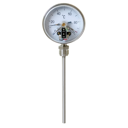 電接點(diǎn)雙金屬溫度計具有無(wú)汞害、指示清晰、堅固、耐震等特點(diǎn)。適用于中低溫度的液體、氣體和蒸汽的現場(chǎng)檢測。當為其配以相應的電氣元件時(shí),即能對被測控的溫度系統實(shí)現發(fā)信報警或自動(dòng)控制。