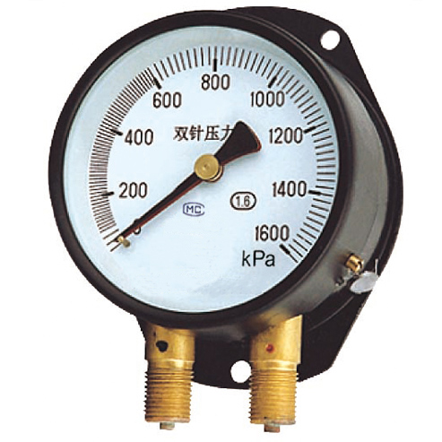 雙針壓力表主要適用于機車(chē)車(chē)輛上測量液壓系統或儲氣缸內的壓力,亦可同時(shí)測量對銅合金及錫鉛合金纖料無(wú)腐蝕性、非結晶和非凝固的兩個(gè)相同或不相同的壓力。